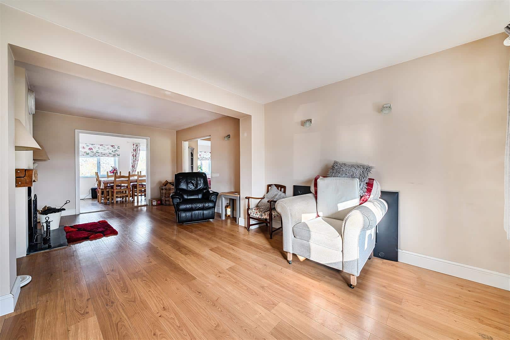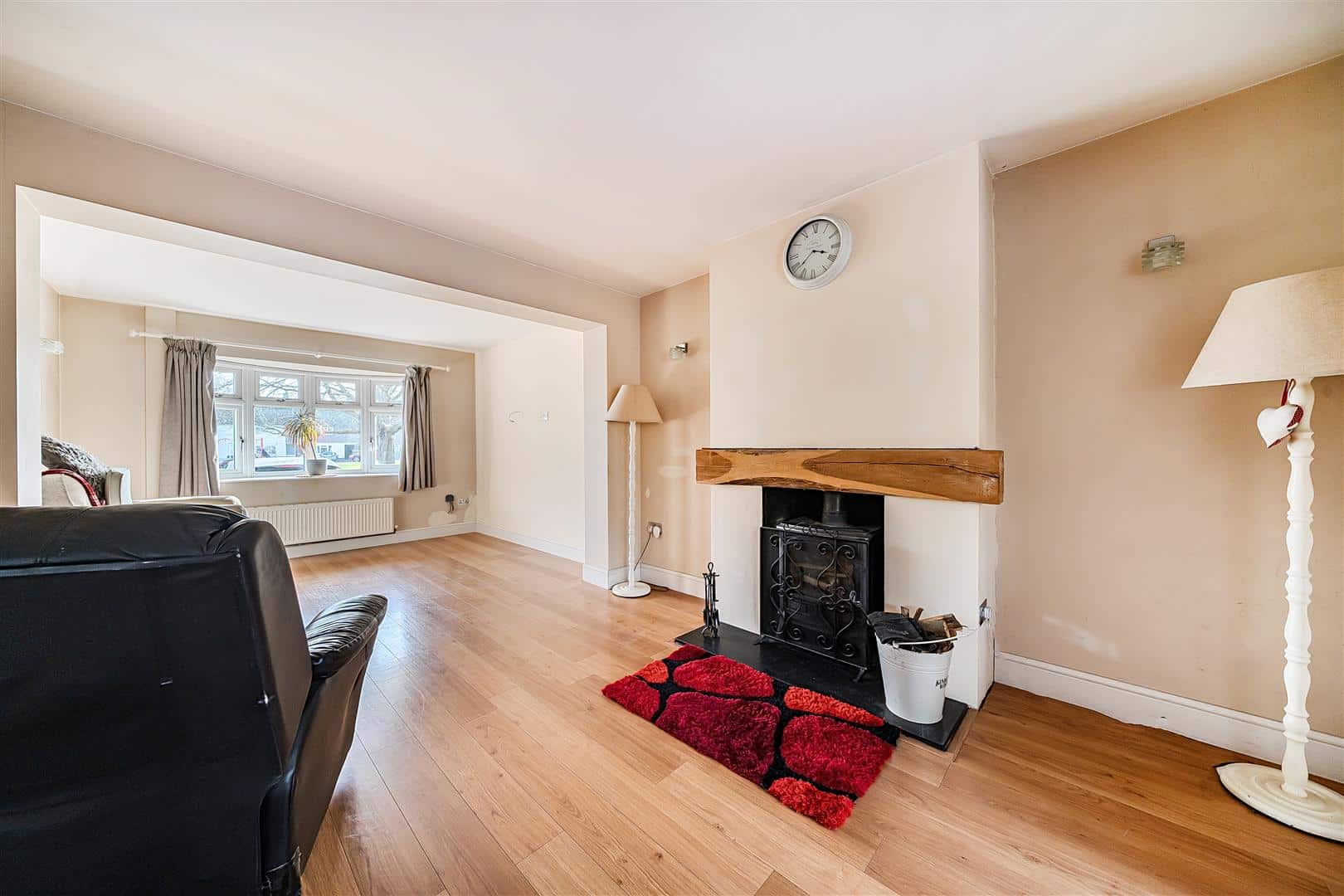 - Spacious living room with log burner