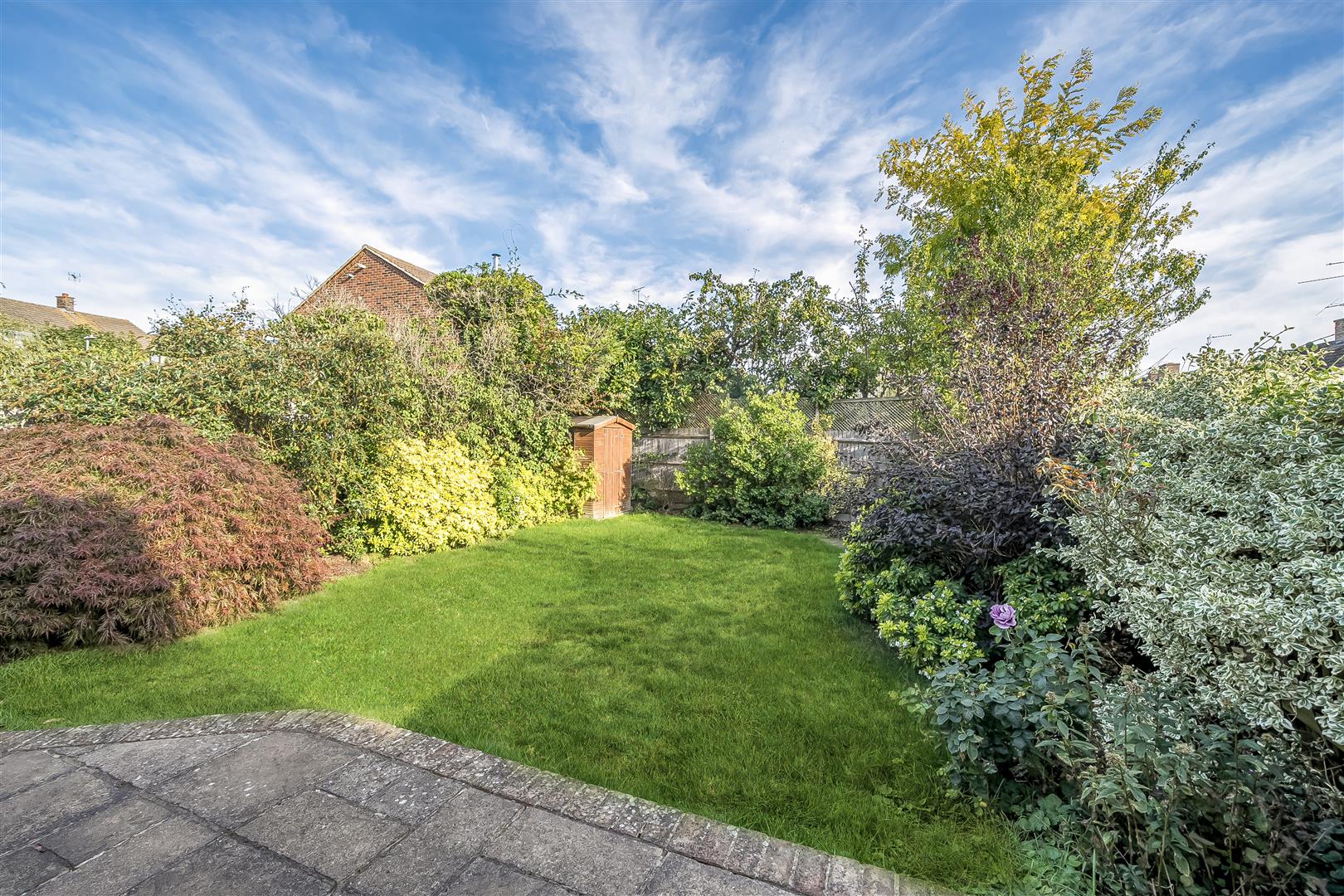 - Mature rear garden with attractive shrub border
