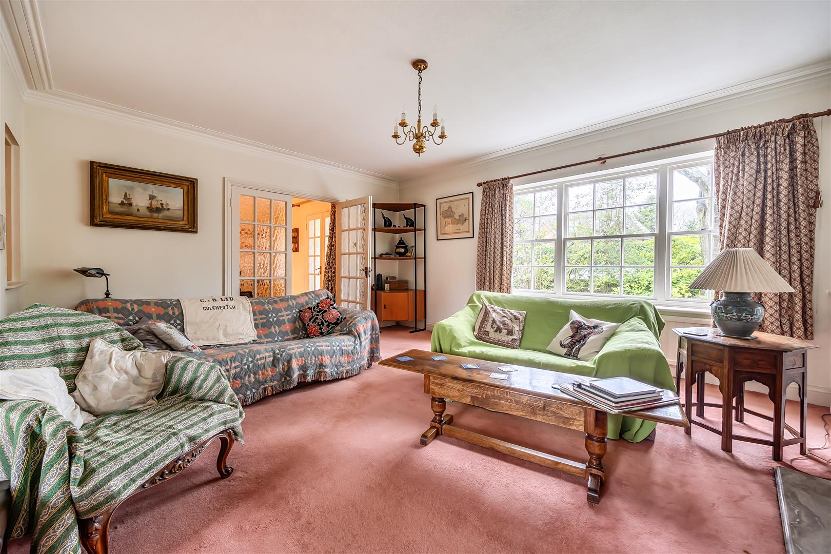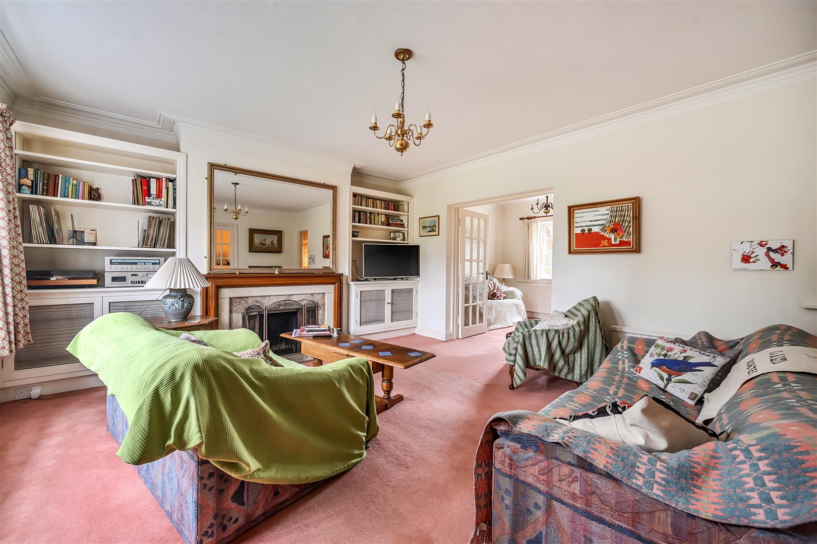 - Spacious living room with open fire