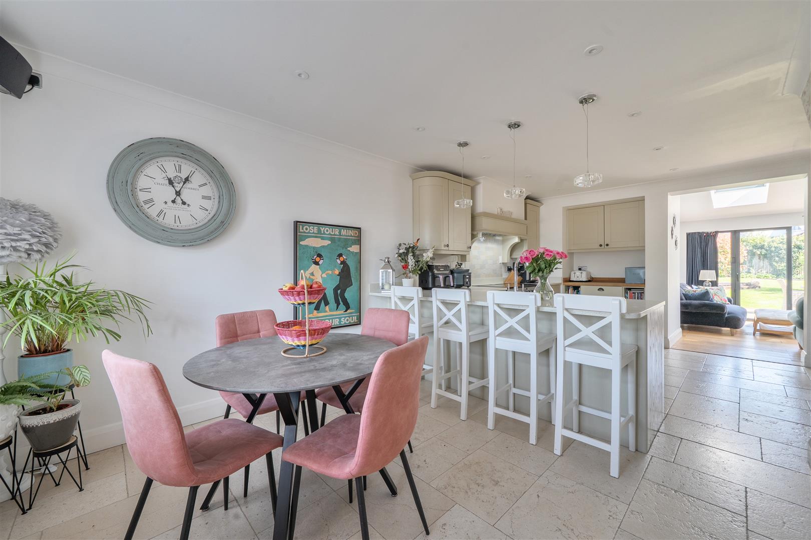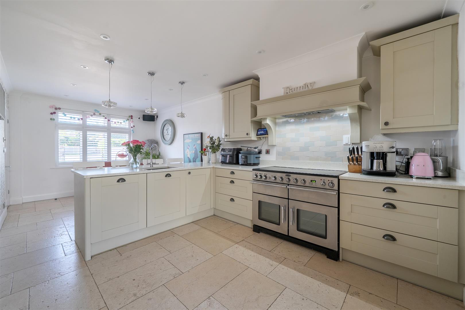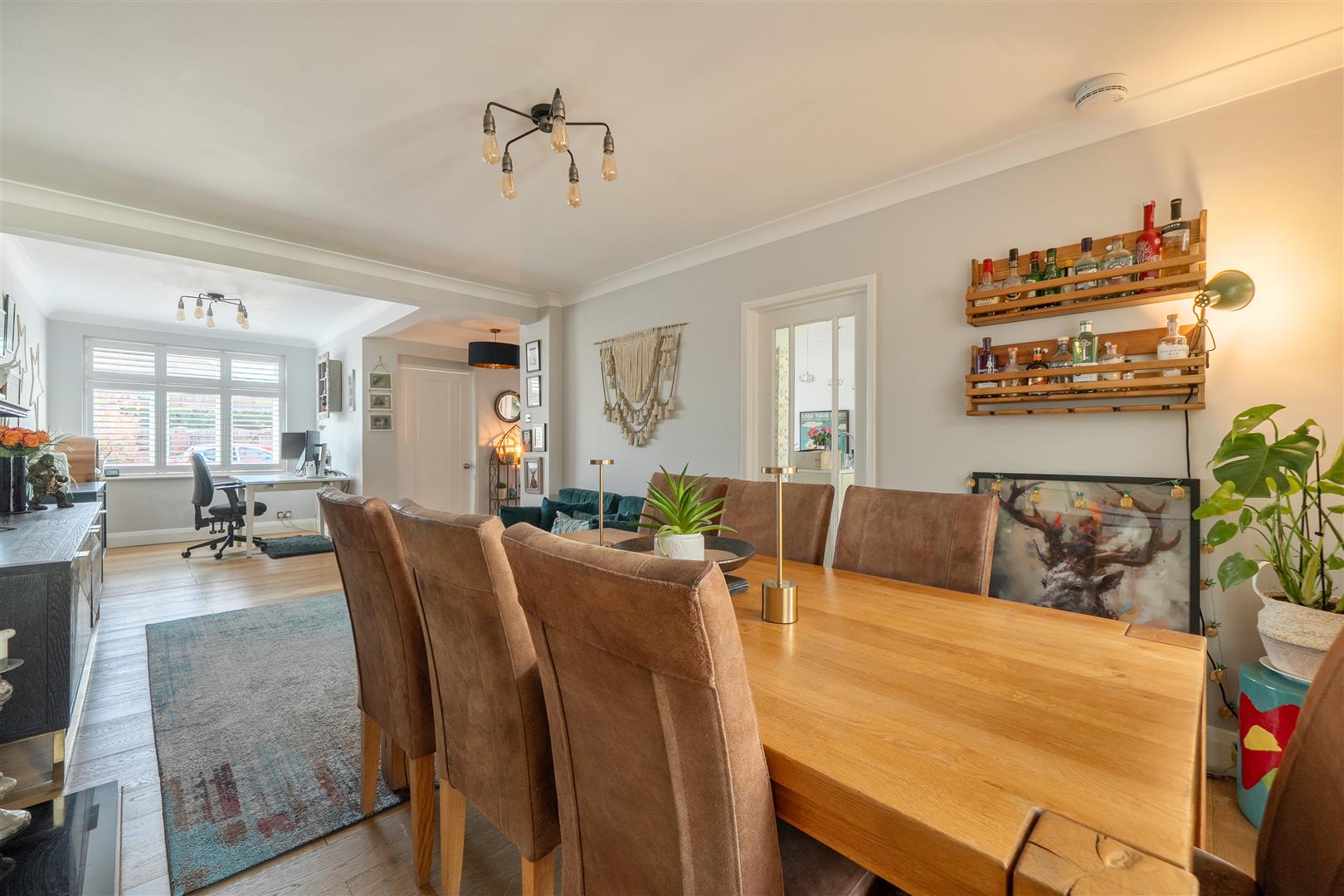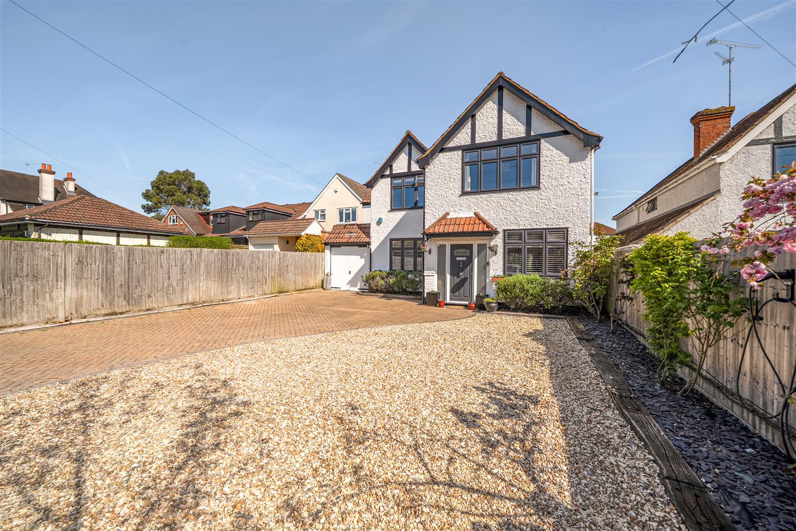 This stunning four-bedroom detached character residence has been thoughtfully enhanced to deliver flexible, stylish living throughout. The accommodation includes a generous sitting room that flows seamlessly into a bright kitchen/dining area, open plan to a large family space with bi fold doors opening onto the rear garden. This is complemented by a separate utility room, cloakroom, and a dedicated study. The first floor comprises four well proportioned bedrooms, all featuring fitted wardrobes and served by a modern family bathroom. The master and second bedrooms further benefit from stylish en suite shower rooms. Externally, the beautifully landscaped rear garden is thoughtfully planted and includes a covered outdoor kitchen with BBQ/bar area, along with a storage shed. To the front, a substantial driveway provides parking for multiple vehicles, in addition to a bin store and an attached garage.