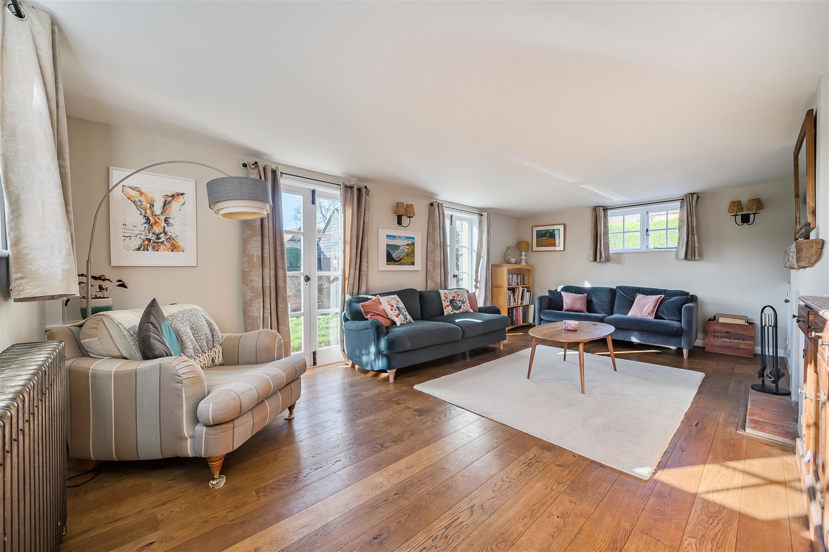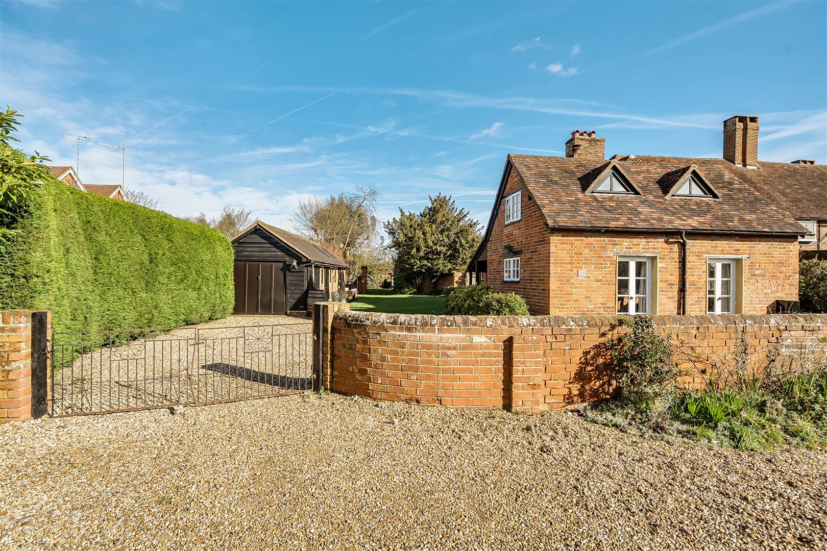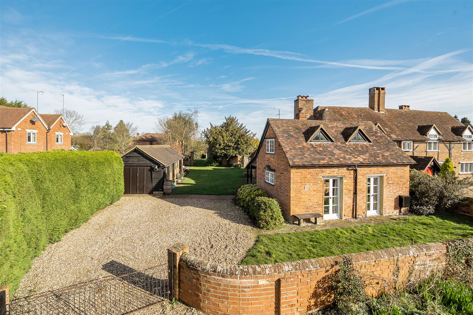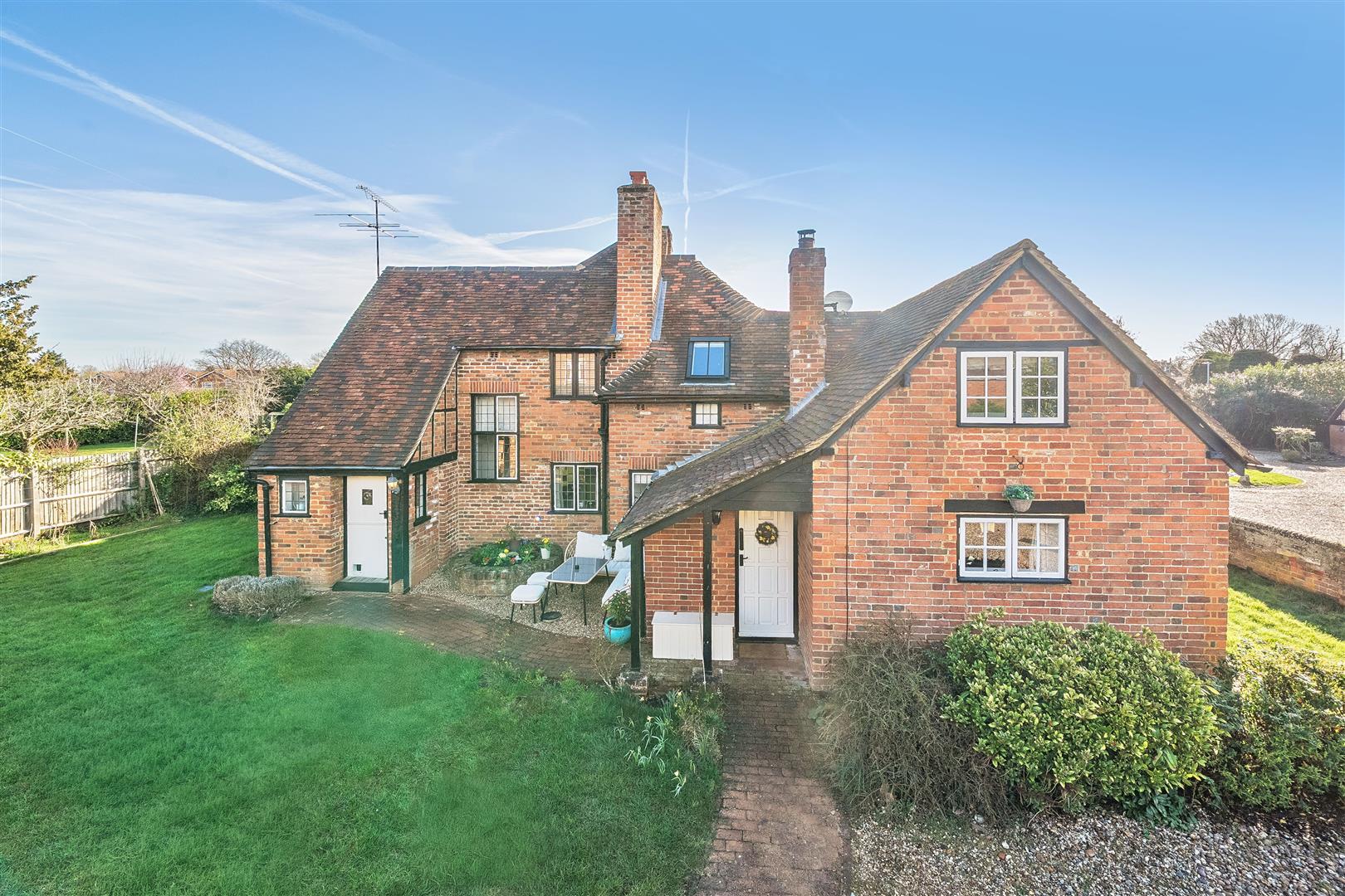 This charming Grade II listed cottage has been smartly renovated throughout and is set on a generous plot of approximately 0.31 acres, within walking distance of Winnersh train station and Dinton Pastures Country Park. The accommodation comprises an entrance hall and a spacious triple aspect living room with two sets of French doors leading onto the garden. There is also a versatile dining room and a refitted kitchen. On the first floor are two double bedrooms and a single bedroom with a refitted family bathroom. Outside, the rear garden is enclosed by wooden fencing and mature hedge borders. The property also benefits from ample driveway parking, a garden office with cloakroom, and an adjoining garage.