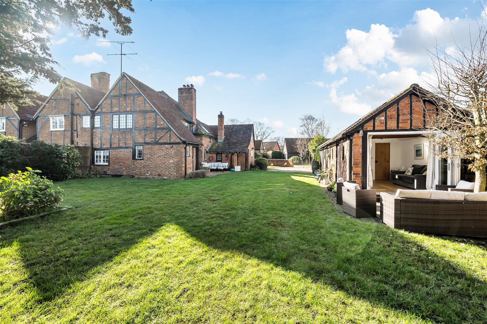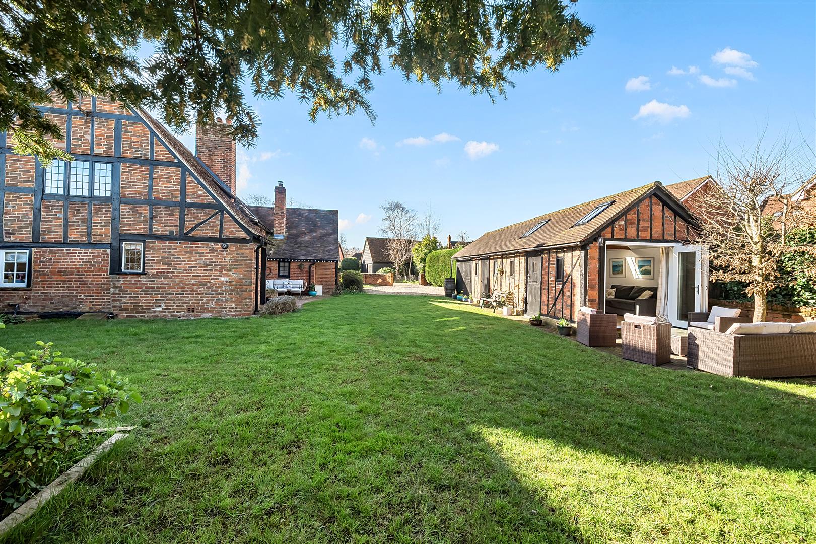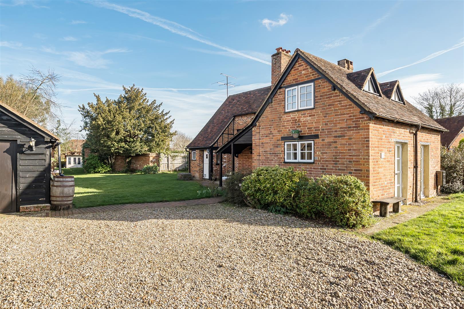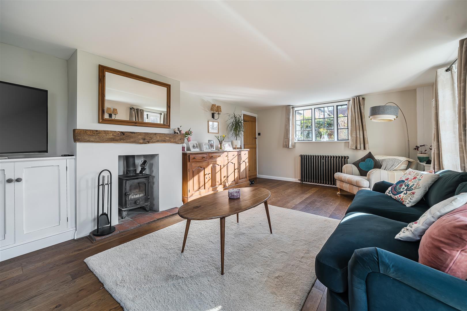This charming Grade II listed cottage has been smartly renovated throughout and is set on a generous plot of approximately 0.31 acres, within walking distance of Winnersh train station and Dinton Pastures Country Park. The accommodation comprises an entrance hall and a spacious triple aspect living room with two sets of French doors leading onto the garden. There is also a versatile dining room and a refitted kitchen. On the first floor are two double bedrooms and a single bedroom with a refitted family bathroom. Outside, the rear garden is enclosed by wooden fencing and mature hedge borders. The property also benefits from ample driveway parking, a garden office with cloakroom, and an adjoining garage.