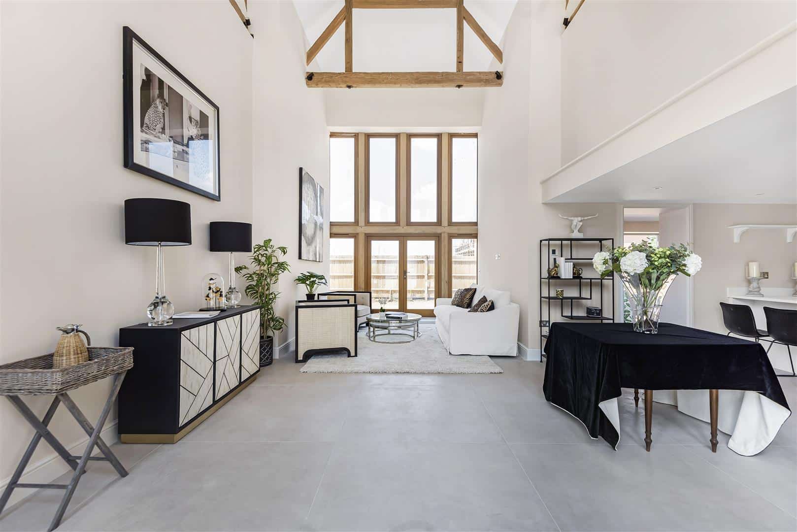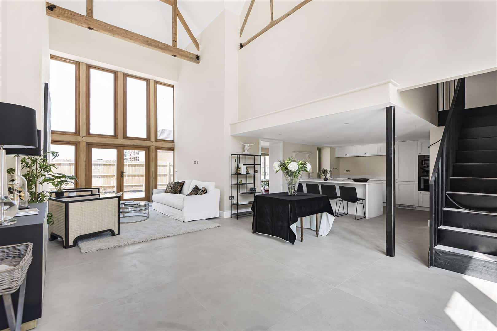 Hayloft House, is a truly unique three bedroom home that seamlessly blends period charm and character, with modern efficiency and design. The result is a beautiful period home that responds to modern living and contemporary life-styles. At its heart is its impressive double-height open-plan kitchen and living room with stunning full height glazed hardwood windows that let the light flood in. With three bedrooms, each with en-suites, this is character and contemporary living at its best and all finished to a high specification.